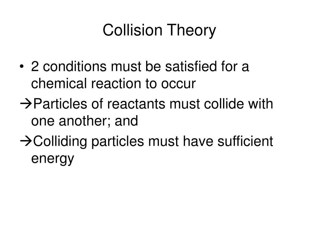 Chemical Kinetics and Equilibrium. Reaction Rates. How fast or slow the reaction occurs. Collision Theory. 2 conditions must be satisfied for a chemical reaction to occur Particles of reactants must collide with one another; and Colliding particles must have sufficient energy.