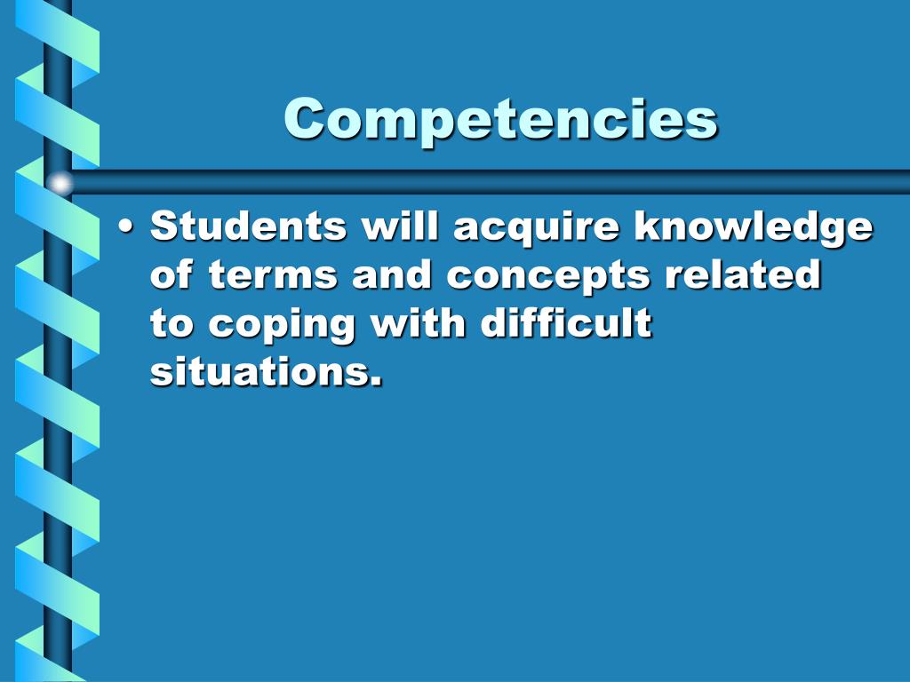 Competencies • Students will acquire knowledge of terms and concepts related to coping with difficult situations.