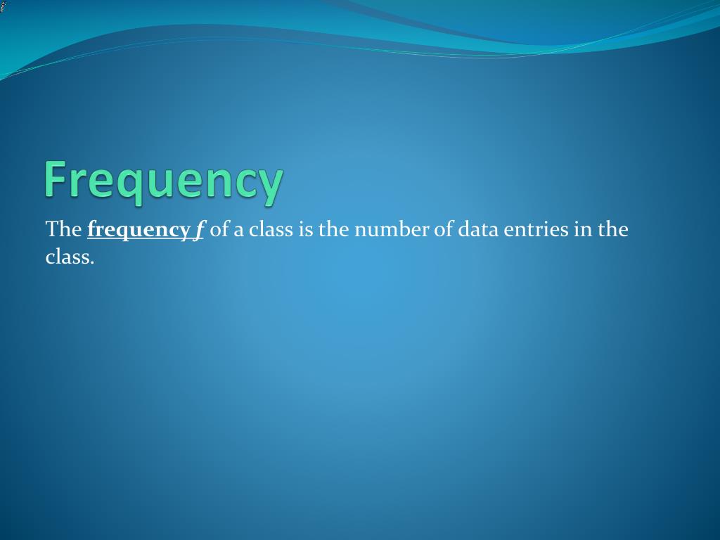 Frequency The frequency fof a class is the number of data entries in the class.