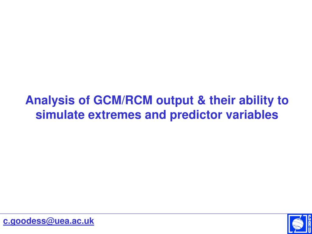 Analysis of GCM/RCM output & their ability to simulate extremes and predictor variables c.goodess@uea.ac.uk