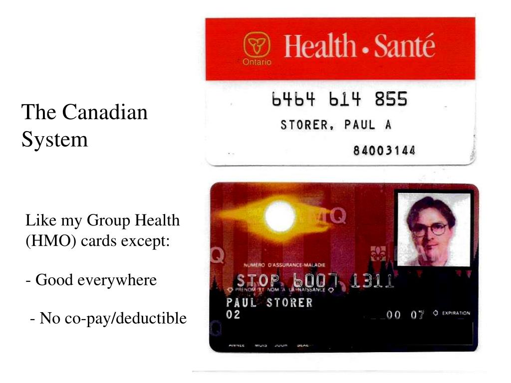 The Canadian System Like my Group Health (HMO) cards except: - Good everywhere - No co-pay/deductible