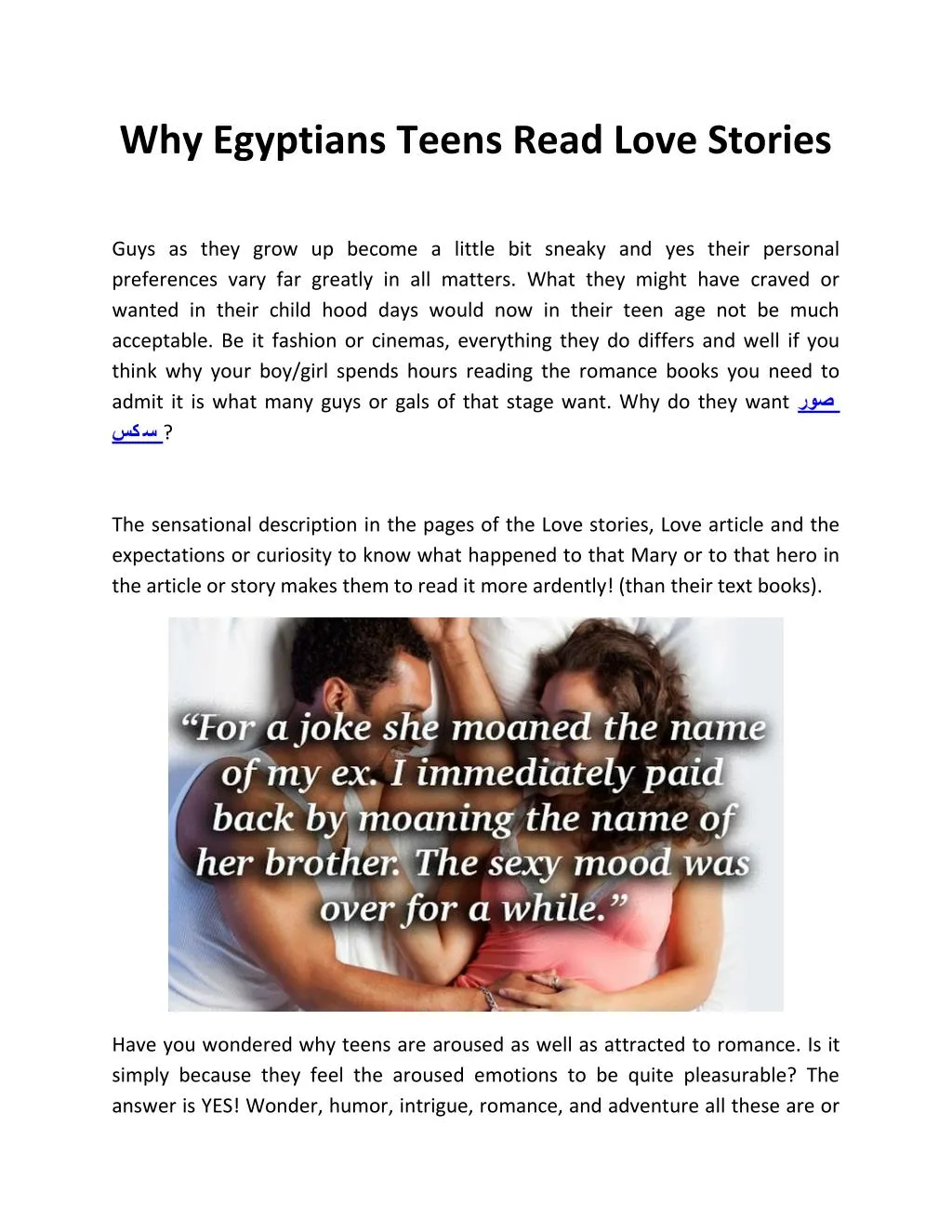 comes a point when we have to stop being a society in denial. The internet is a place of all sorts of adult dating and romance in Egypt is one of the realities of the internet-dating world. روصسك س Finally it is the books of the romantic kind they turn into for filtering their stressful thoughts or tough work load which can be the reason why teens love to read love stories.