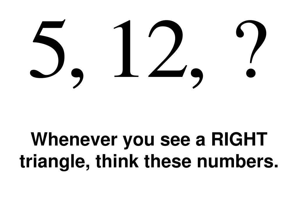 Whenever you see a RIGHT triangle, think these numbers. Whenever you see a RIGHT triangle, think these numbers. Whenever you see a RIGHT triangle, think these numbers.