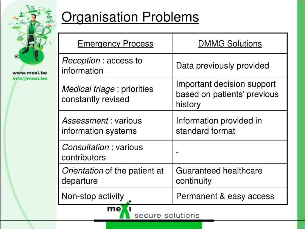 meXi Secure Solutions • Activity launched in 1992 • Leader in the french-speaking part of Belgium for secure transfer of medical data • Used in 85 hospitals and by 1700 GP • Participation in FLOW project of Public Healthcare Ministry in Belgium • Ongoing project with Quebec Ministry of Health and Social Services, projects in Luxemburg and in France