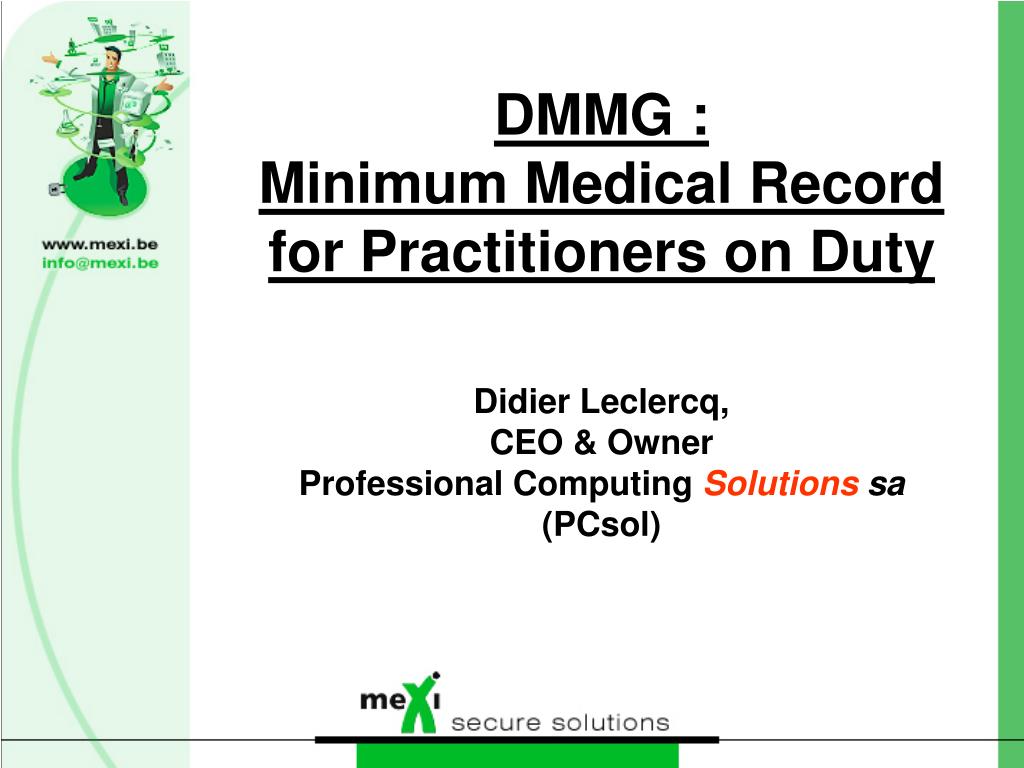 DMMG :Minimum Medical Record for Practitioners on DutyDidier Leclercq,CEO & OwnerProfessional Computing Solutions sa (PCsol)