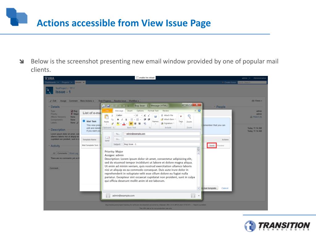 Actions accessible from View Issue Page • Belowis the screenshotpresentingnew email windowprovided by one of popular mail clients.