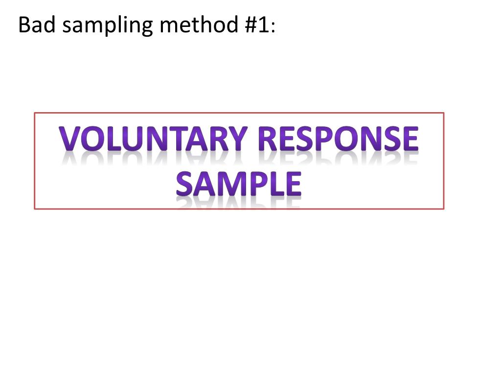 Problems with surveys (even when sampling methods are good) • Undercoverage • Some groups in the population are left out of the process of choosing a sample. • Nonresponse • Individual chosen for the sample can’t be contacted or does not cooperate • Response Bias • Occurs when a respondent does not give an accurate response. • Causes: poor question wording, lying, etc. • *These problems may or may not cause bias.* • Bias will result if the people left out are different, as a group, than the people included.