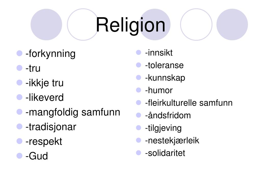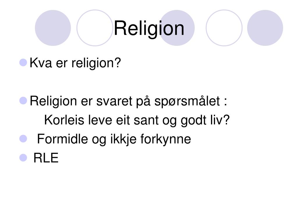 Religion • Kva er religion? • Religion er svaret på spørsmålet : Korleis leve eit sant og godt liv? • Formidle og ikkje forkynne • RLE