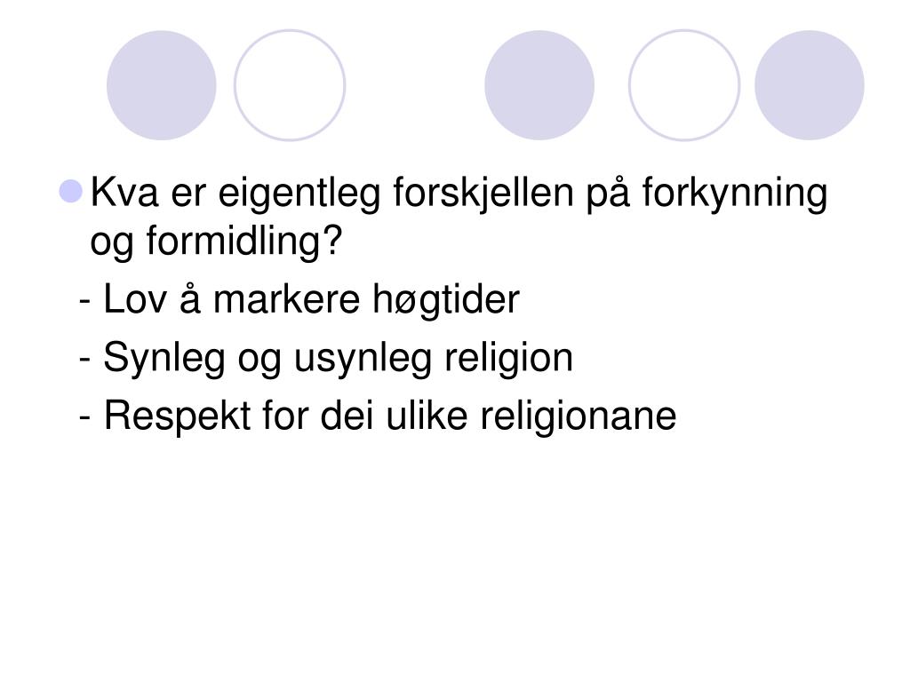 Kva er eigentleg forskjellen på forkynning og formidling? - Lov å markere høgtider - Synleg og usynleg religion - Respekt for dei ulike religionane