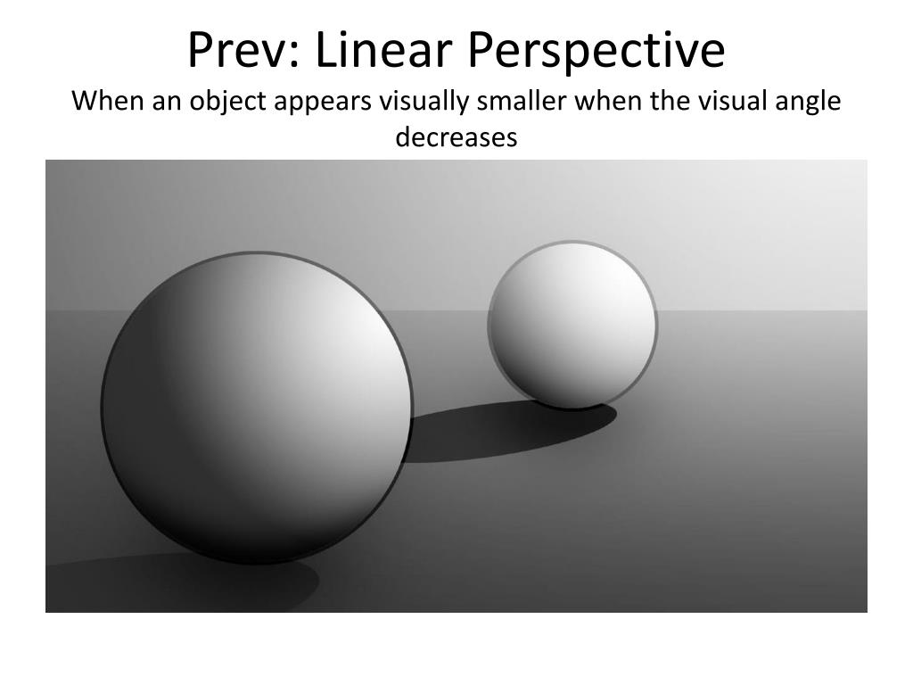 Prev: Linear PerspectiveWhen an object appears visually smaller when the visual angle decreases