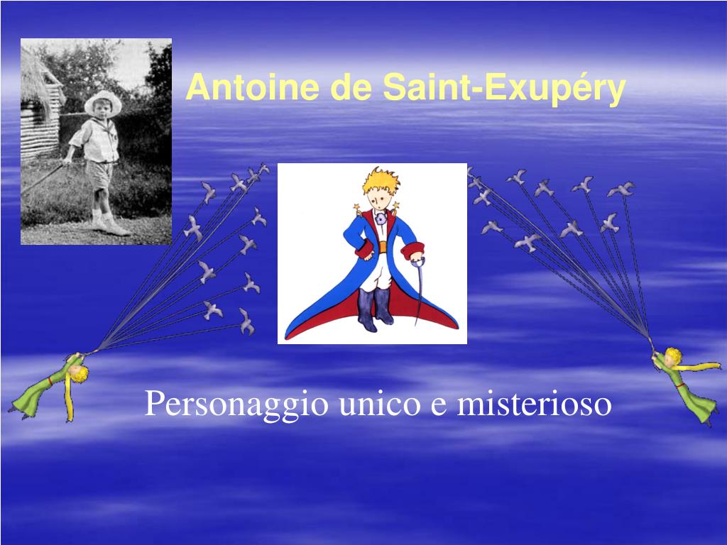 Antoine de Saint-Exupéry. (1900 -1944). Antoine de Saint-Exupéry. Personaggio unico e misterioso. Antoine de Saint-Exupéry. Da piccolo era come «il piccolo principe»: Biondo, coi boccoli e si stupiva davanti alle meraviglie del mondo. Cenni biografici. Nasce a Lyon nel 1900.