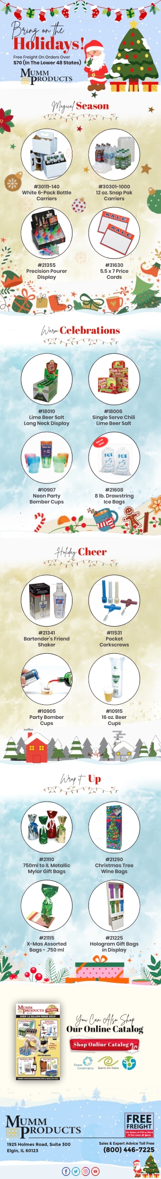 MUMM Products Inc can provide high-quality packaging solutions for the liquor and convenience store industry, including six-pack plastic rings and innovative packaging machines. We are committed to providing exceptional customer service and helping businesses of any size meet their unique can and bottle packaging needs. Contact us today at (800) 446-7225 to streamline your packaging operations .