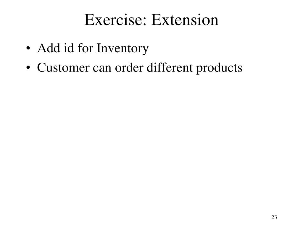 Exercise: Extension • Add id for Inventory • Customer can order different products