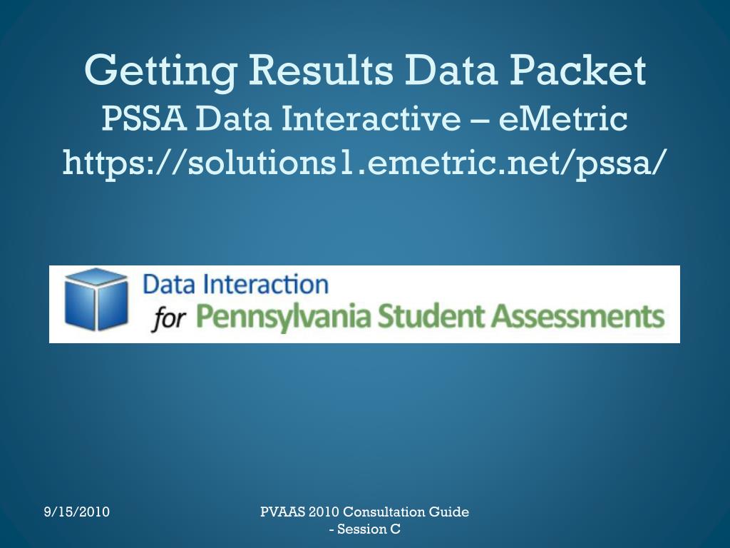 Getting Results Data PacketPSSA Data Interactive – eMetrichttps://solutions1.emetric.net/pssa/ PVAAS 2010 Consultation Guide - Session C