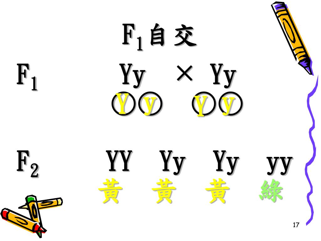 單性雜交 黃色 綠色 親代YY yy ○ ○ y Y