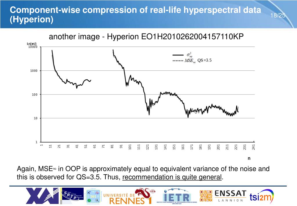 Component-wise compression of real-life hyperspectral data (Hyperion) • In OOP, MSEnc is to be approximately equal to equivalent variance of the noise. • This is observed for that can be recommended for lossy compression with VST
