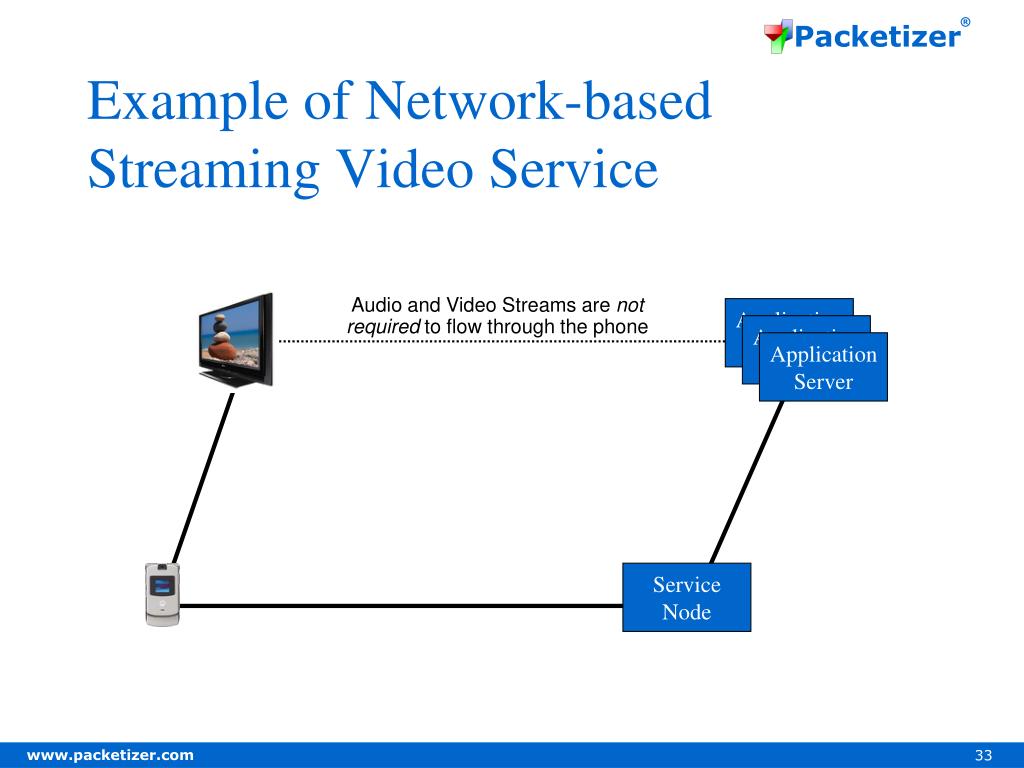Example of Network-based Streaming Video Service Audio and Video Streams are not required to flow through the phone Application Server Application Server Application Server Service Node