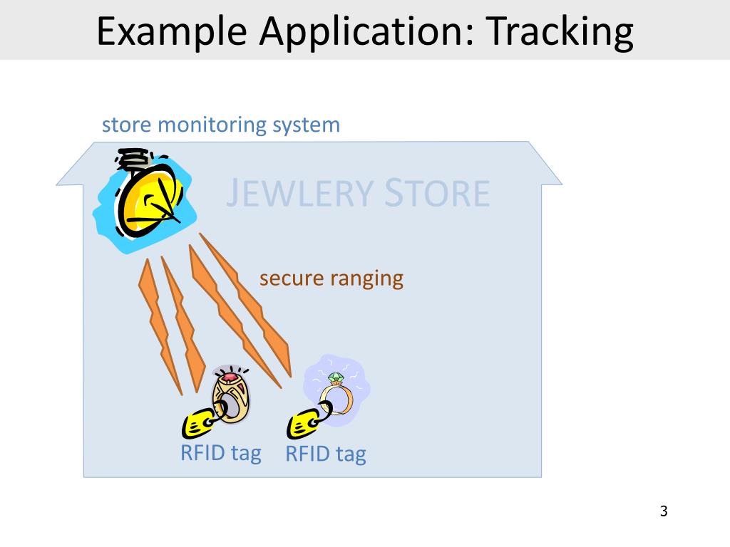 Example Application: Tracking store monitoring system JEWLERY STORE secure ranging RFID tag RFID tag