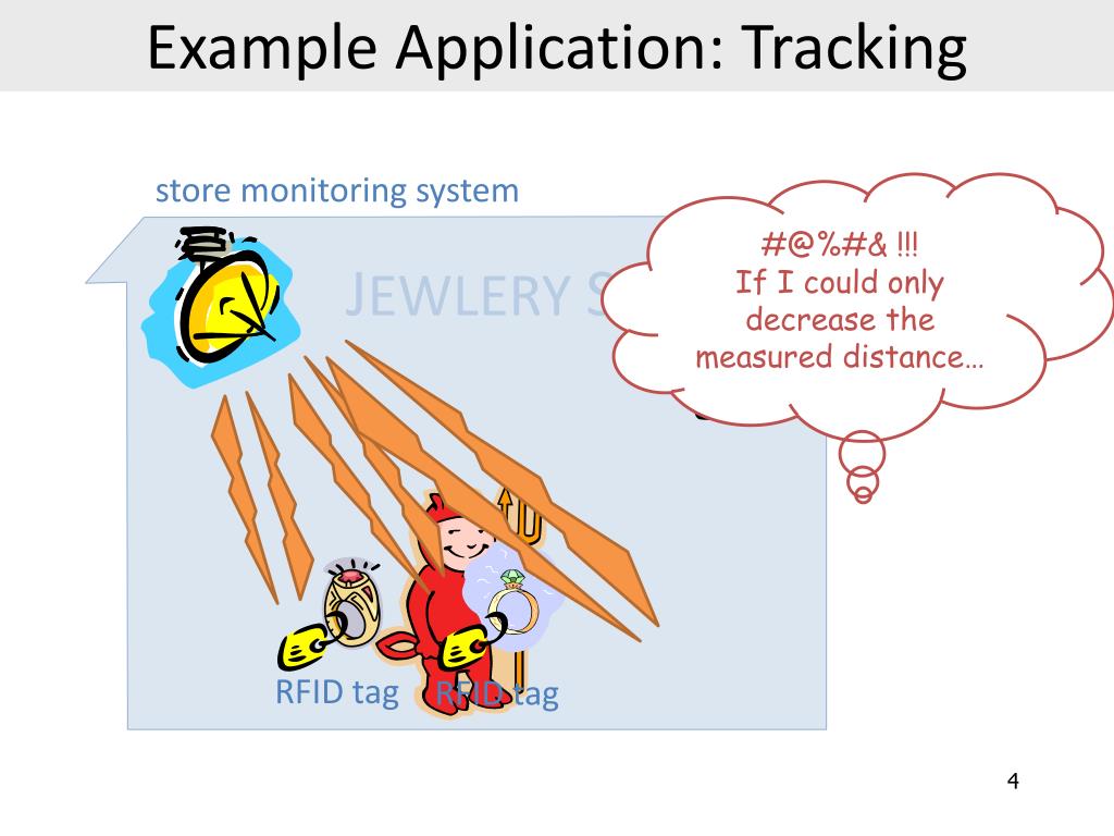 Example Application: Tracking #@%#& !!! If I could only decrease the measured distance… store monitoring system JEWLERY STORE RFID tag RFID tag