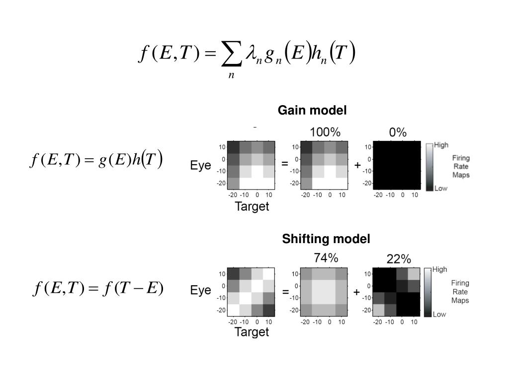 Gain field Tuning curve Mechanisms for encoding multiple variables • Centered tuning curve • Multiplicative encoding - gain field • Partial shift encoding – intermediate reference frame