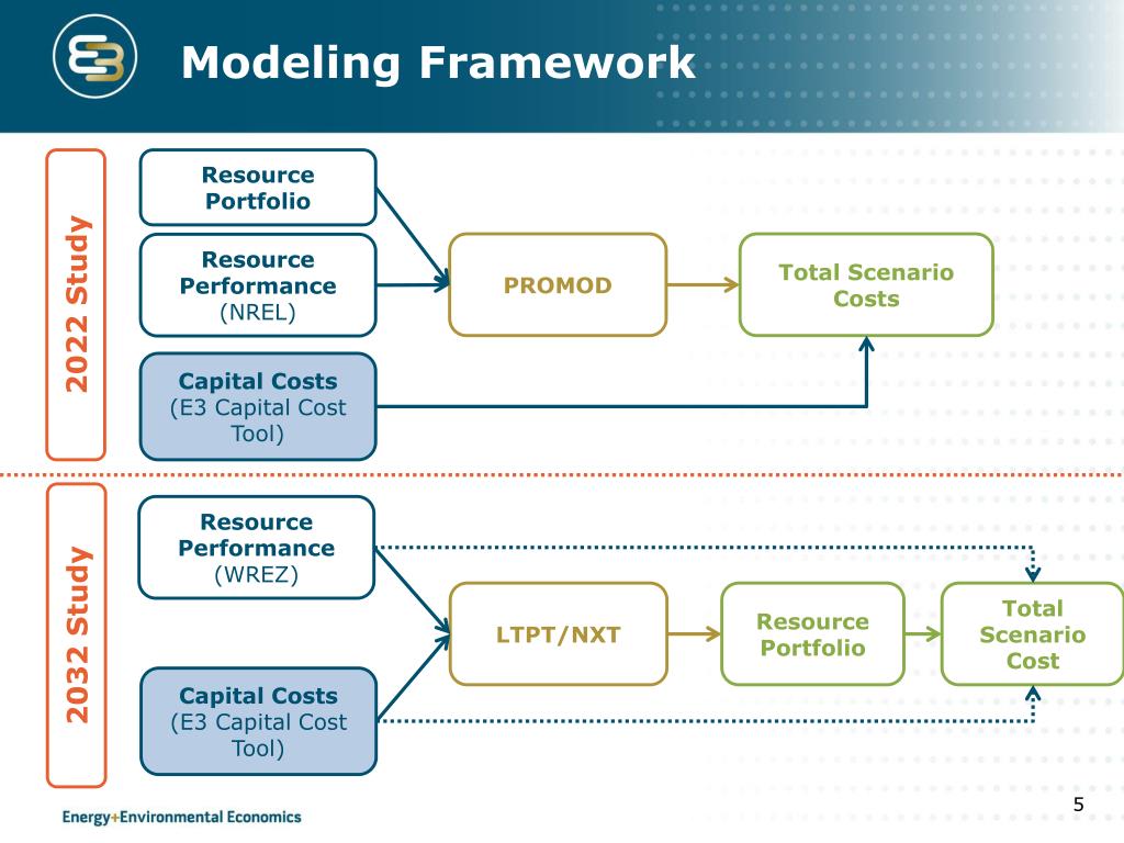 Modeling Framework Resource Portfolio Total Scenario Costs PROMOD Resource Performance (NREL) 2022 Study Capital Costs (E3 Capital Cost Tool) Resource Performance (WREZ) LTPT/NXT Resource Portfolio Total Scenario Cost 2032 Study Capital Costs (E3 Capital Cost Tool)