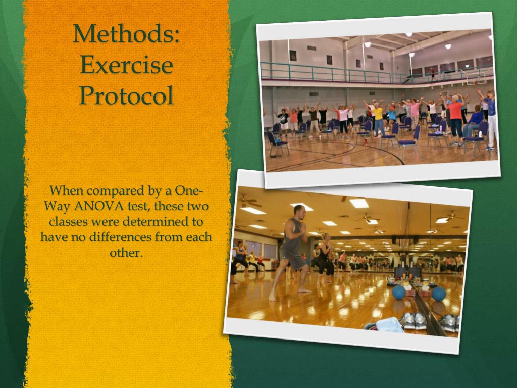 Methods: Exercise Protocol When compared by a One-Way ANOVA test, these two classes were determined to have no differences from each other.