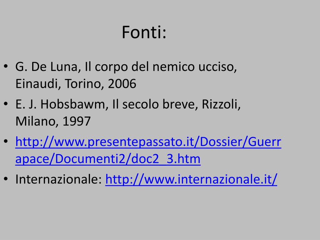 Fonti: G. De Luna, Il corpo del nemico ucciso, Einaudi, Torino, 2006 E. J. Hobsbawm, Il secolo breve, Rizzoli, Milano, 1997 http://www.presentepassato.it/Dossier/Guerrapace/Documenti2/doc2_3.htm Internazionale: http://www.internazionale.it/