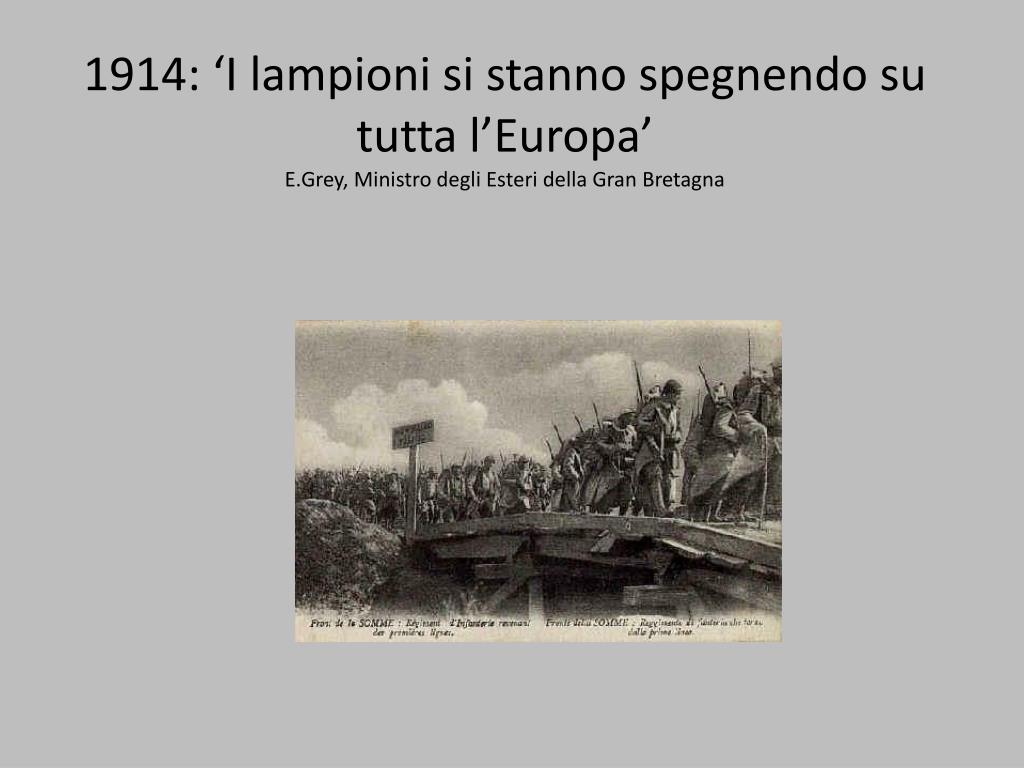 1914: ‘I lampioni si stanno spegnendo su tutta l’Europa’E.Grey, Ministro degli Esteri della Gran Bretagna