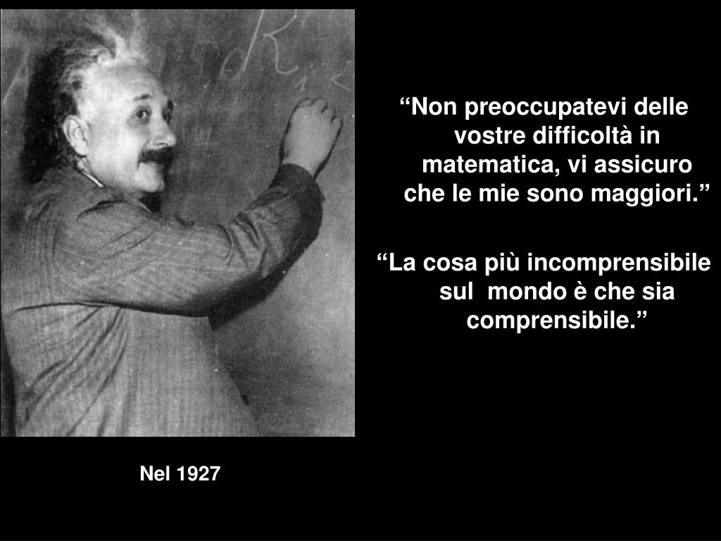 Nel 1927 “Non preoccupatevi delle vostre difficoltà in matematica, vi assicuro che le mie sono maggiori.” “La cosa più incomprensibile sul mondo è che sia comprensibile.”