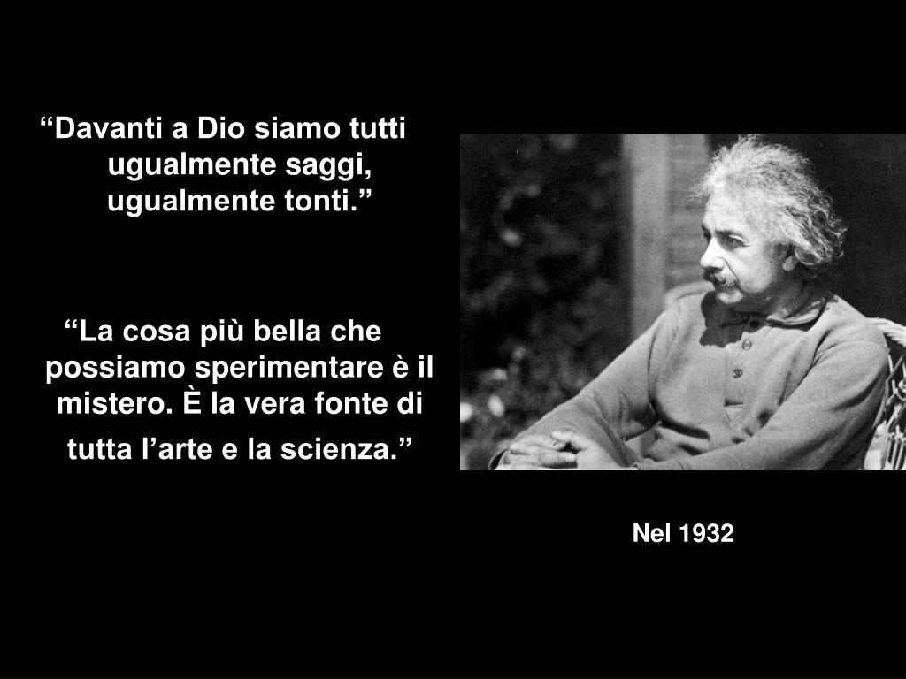Nel 1932 “Davanti a Dio siamo tutti ugualmente saggi, ugualmente tonti.” “La cosa più bella che possiamo sperimentare è il mistero. È la vera fonte di tutta l’arte e la scienza.”