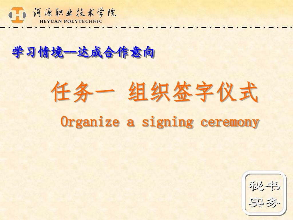 学习情境--达成合作意向 任务一 组织签字仪式Organize a signing ceremony