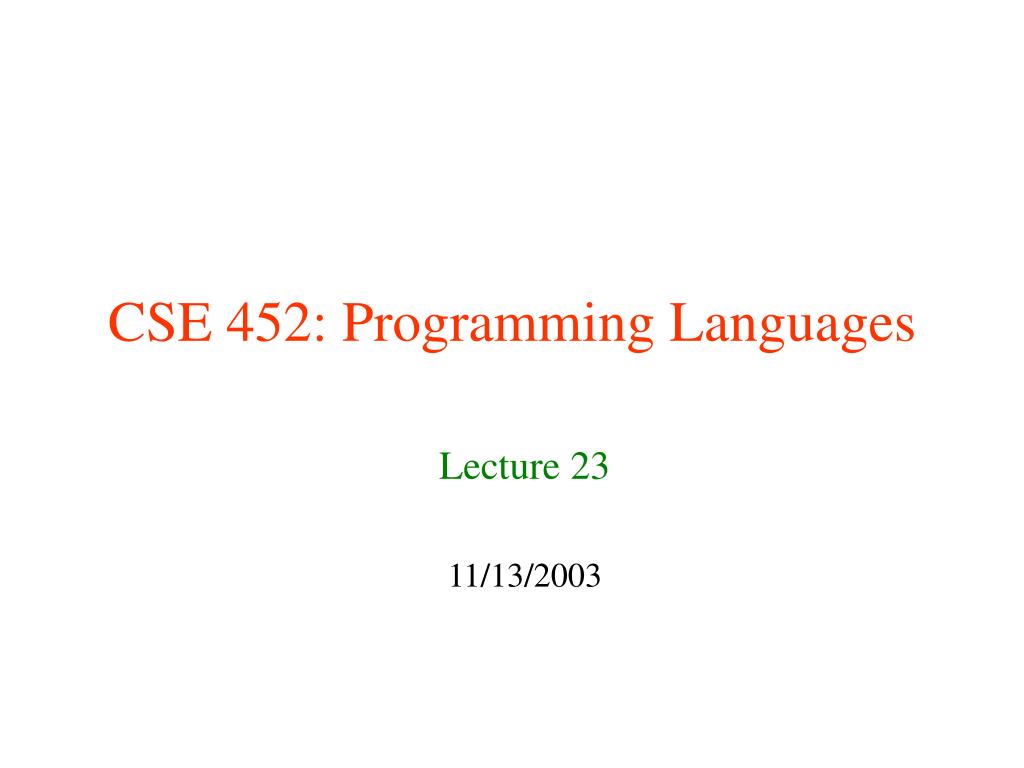 CSE 452: Programming Languages Lecture 23 11/13/2003