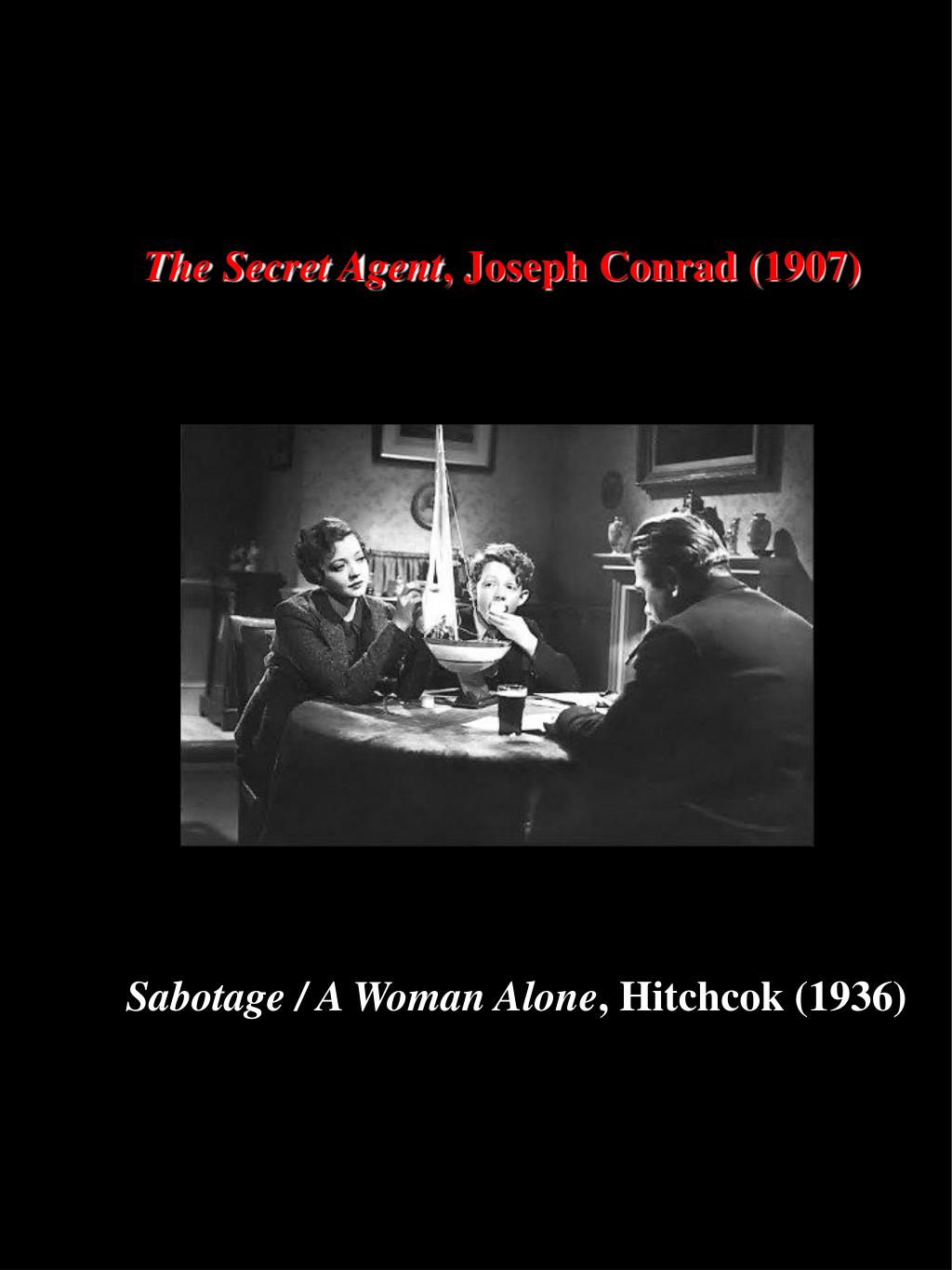 The Secret Agent, Joseph Conrad (1907) Sabotage / A Woman Alone, Hitchcok (1936)