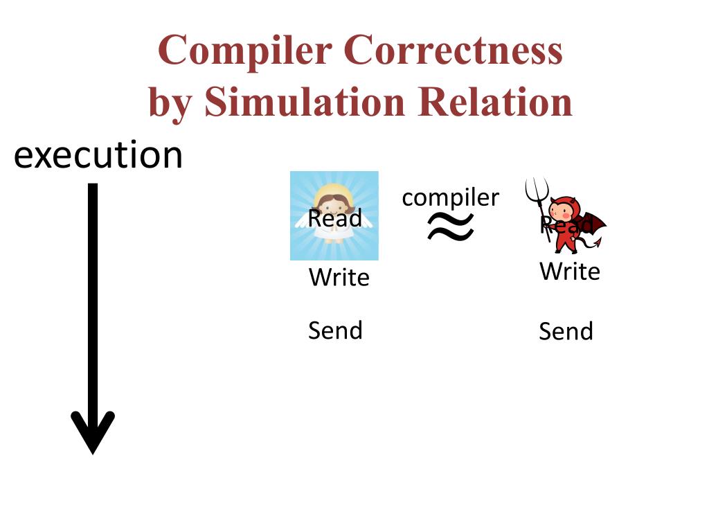 Compiler Correctness by Simulation Relation execution compiler Read Read Write Write Send Send