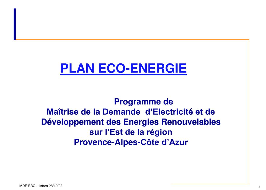 PLAN ECO-ENERGIE • Programme de • Maîtrise de la Demande d’Electricité et de Développement des Energies Renouvelables sur l’Est de la région Provence-Alpes-Côte d’Azur