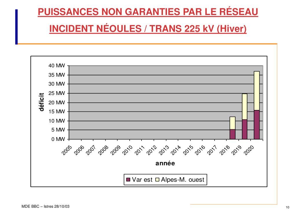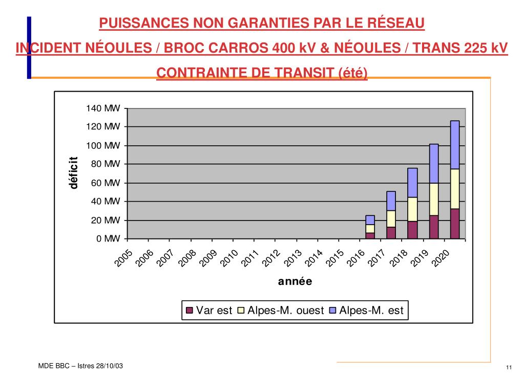PUISSANCES NON GARANTIES PAR LE RÉSEAU INCIDENT NÉOULES / BROC CARROS 400 kV & NÉOULES / TRANS 225 kV CONTRAINTE DE TRANSIT (été)