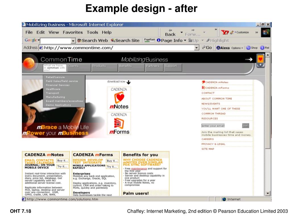 Marketing-led design objectives • Customer acquisition • Proposition, recruitment offer • Conversion • Engage first time visitors • Clear call-to-action • Customer retention • Content and offers should encourage repeat visitors • Service quality • Branding • To reassure