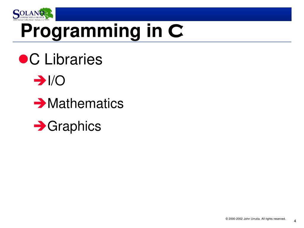 Programming in C • C Libraries • I/O • Mathematics • Graphics