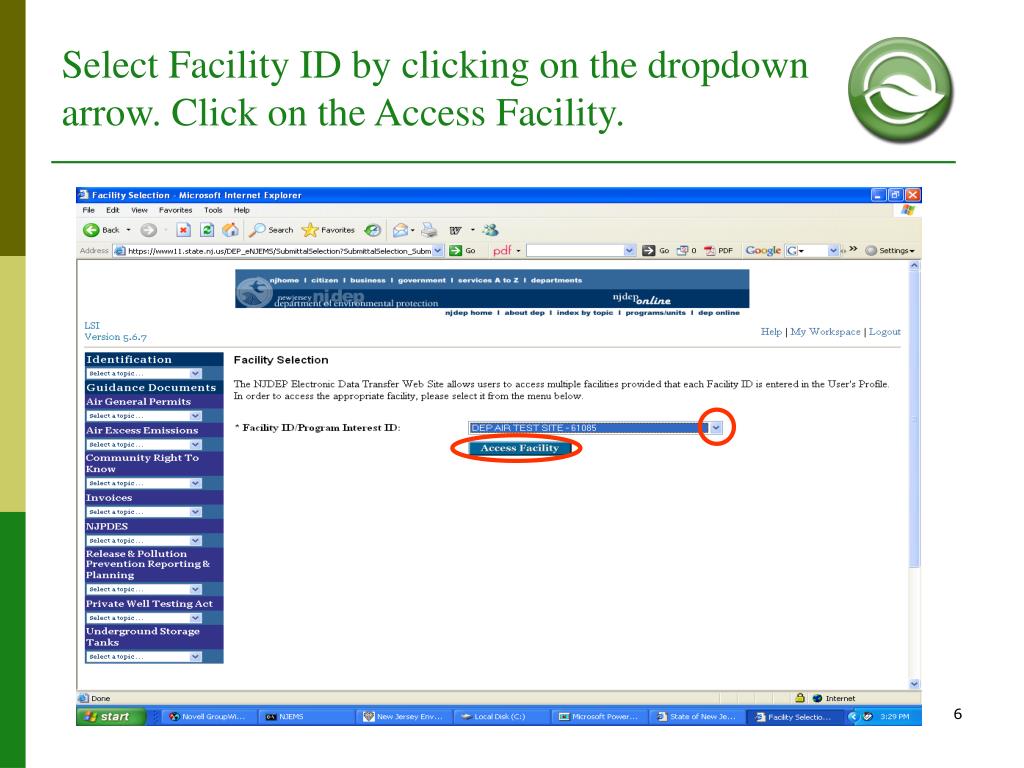 Select Facility ID by clicking on the dropdown arrow. Click on the Access Facility.