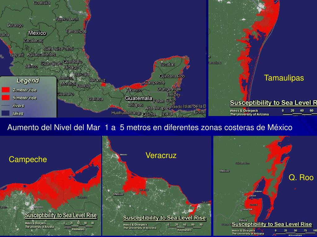 Veracruz Campeche Q. Roo Tamaulipas Aumento del Nivel del Mar 1 a 5 metros en diferentes zonas costeras de México