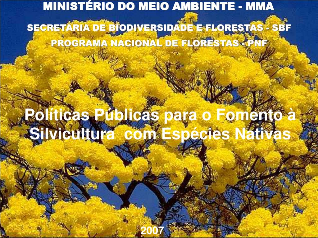 MINISTÉRIO DO MEIO AMBIENTE - MMA SECRETARIA DE BIODIVERSIDADE E FLORESTAS - SBF PROGRAMA NACIONAL DE FLORESTAS - PNF Políticas Públicas para o Fomento à Silvicultura com Espécies Nativas 2007