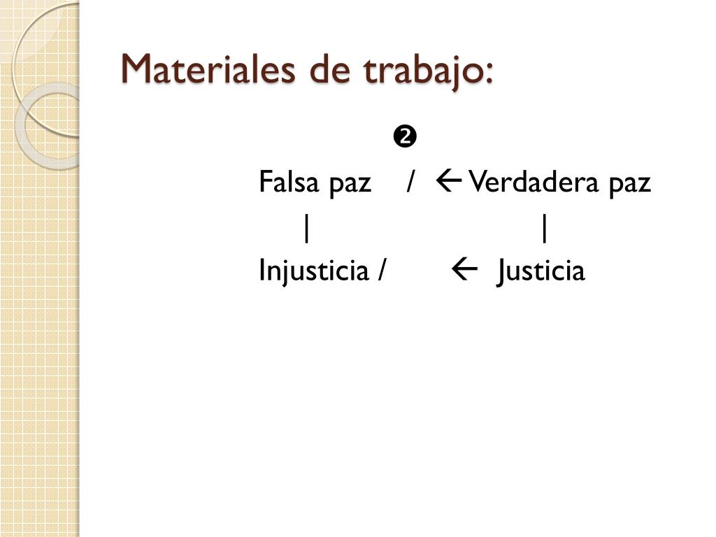 Materiales de trabajo: Falsa paz / Verdadera paz | | Injusticia / Justicia