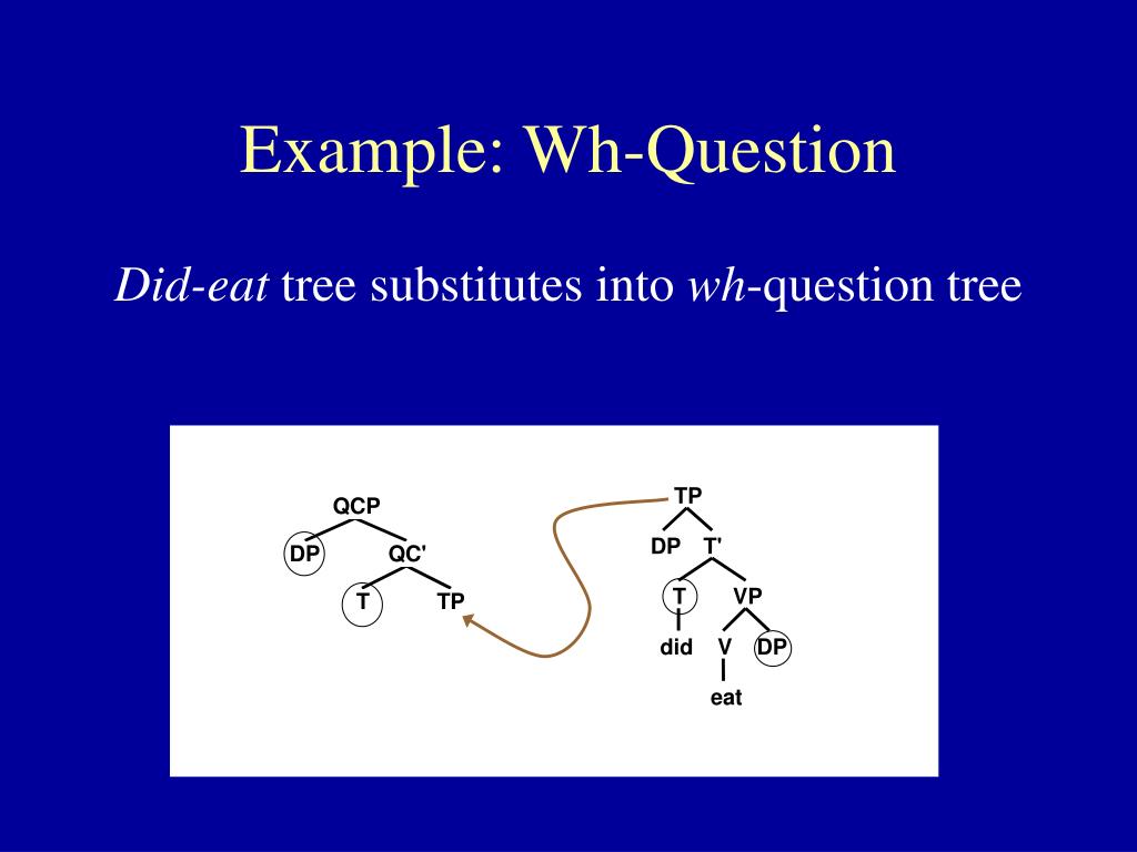 Example: Wh-Question Did-eat tree substitutes into wh-question tree