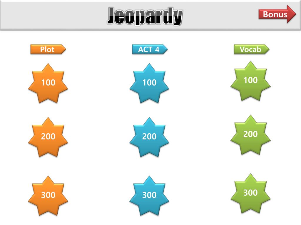 Jeopardy Bonus Plot ACT 4 Vocab 100 100 100 200 200 200 300 300 300