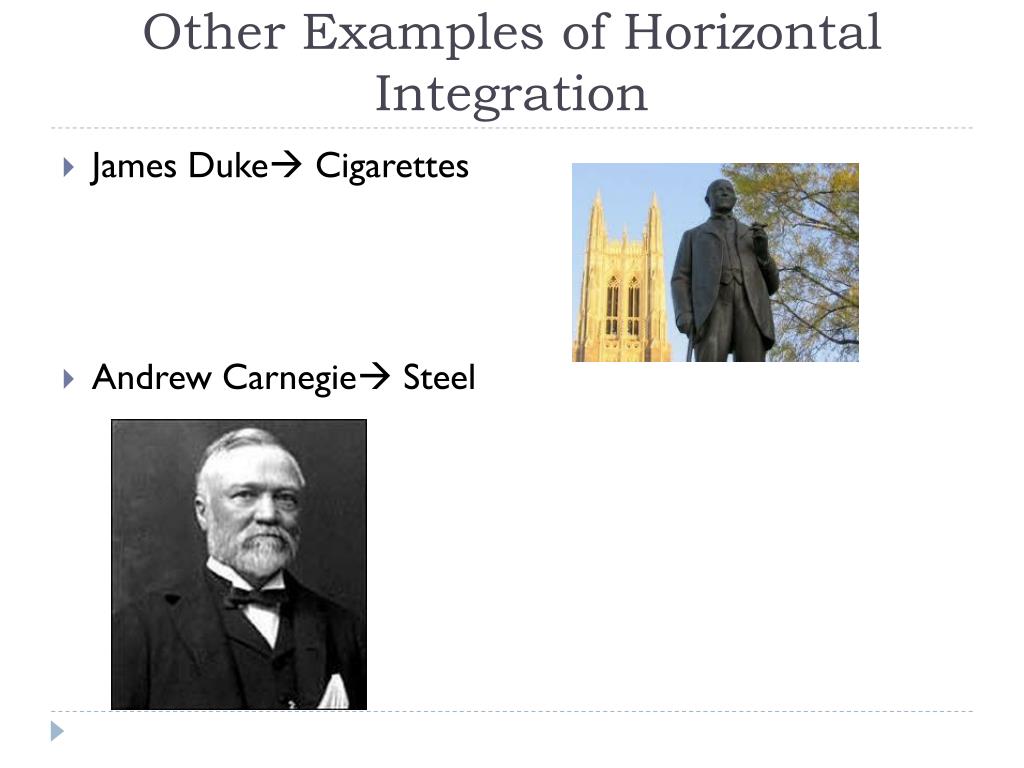 Other Examples of Horizontal Integration • James Duke Cigarettes • Andrew Carnegie Steel