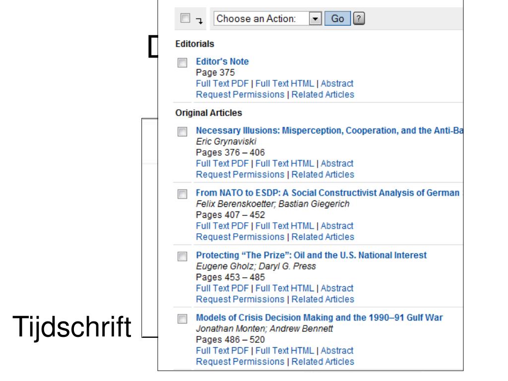 Zoeken in de full text van elektronische tijdschriften • Cambridge Journals Online • JSTOR • Oxford University Press Journals • Project MUSE • Periodicals Archive Online • SAGE • SpringerLink • Wiley Interscience