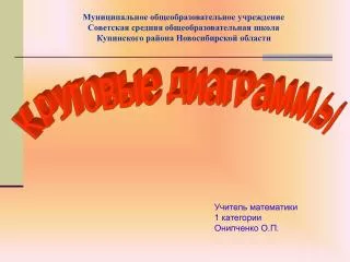Муниципальное общеобразовательное учреждениеСоветская средняя общеобразовательная школаКупинского района Новосибирской области Круговые диаграммы Учитель математики 1 категории Онипченко О.П.