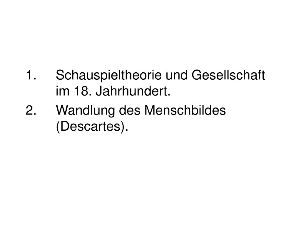 1. Schauspieltheorie und Gesellschaft im 18. Jahrhundert. 2. Wandlung des Menschbildes (Descartes).