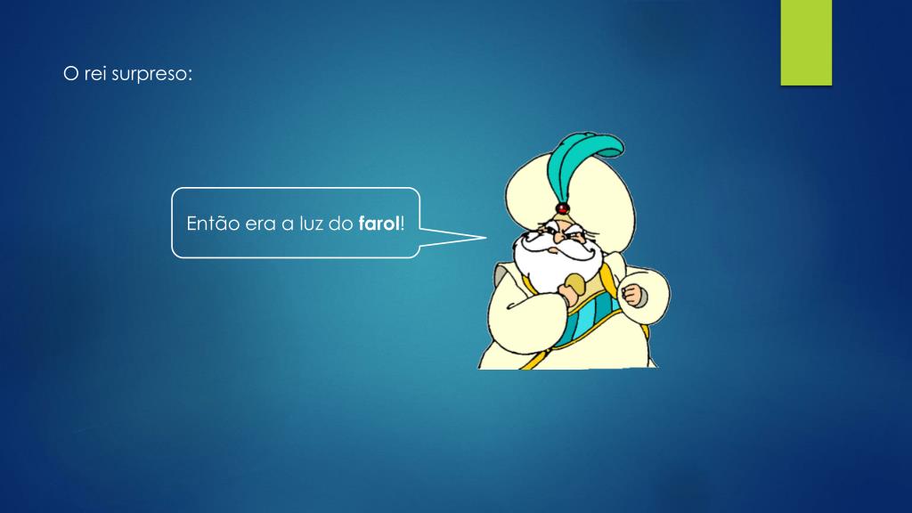 Como não chegasse a uma conclusão satisfatória consultou Ali-Effendi, seu velho mestre e conselheiro. O sábio ponderou: Não deves acreditar no prefeito, nem no grão-vizir, nem no general. Creio que a tal luz provinha do farol de El-Basin.