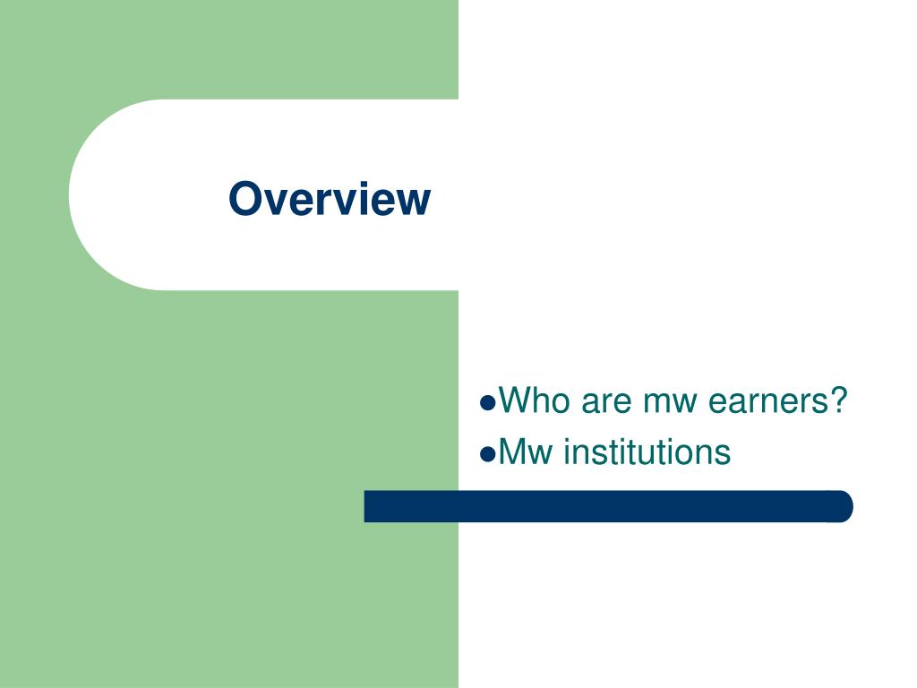 Overview Who are mw earners? Mw institutions
